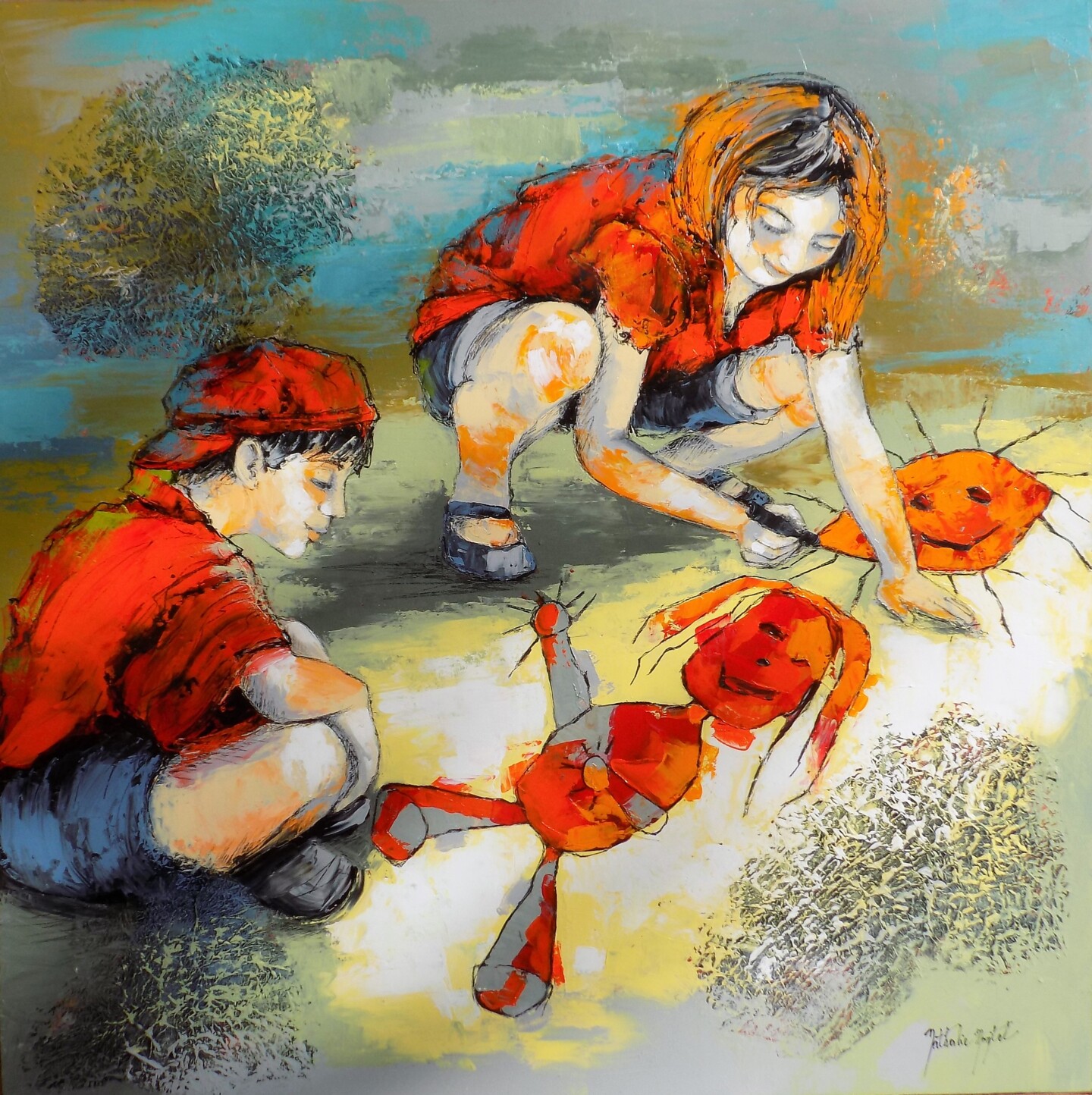 Ce tableau célèbre la liberté de créer, de jouer, de rêver — ce pouvoir que les enfants possèdent naturellement et que l’artiste nous invite à retrouver.
